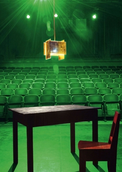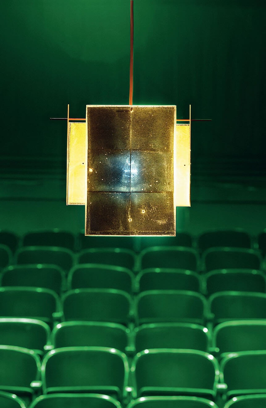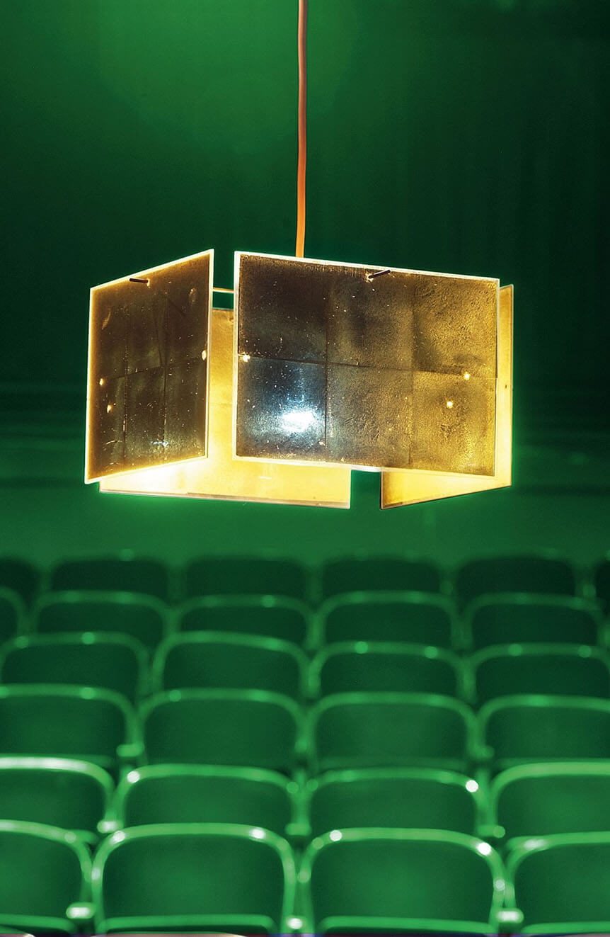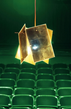 Skærmene med 24 karat bladguld støbt med akrylglas er fremstillet individuelt i hånden i en proces, hvor det ægte guld bankes papirstyndt til en tykkelse på 1/10.000 mm, så kortbølget blåt lys kan trænge ind mellem molekylerne, mens svagt gyldne lys reflekteres. Fremstillingen af skærmene giver bladguldet et smukt stjerneformet mønster, der sammen med kontrasten mellem guldet og rammens røde stænger, den røde ledning og det blå lyspunkt skaber en meget smuk pendel.