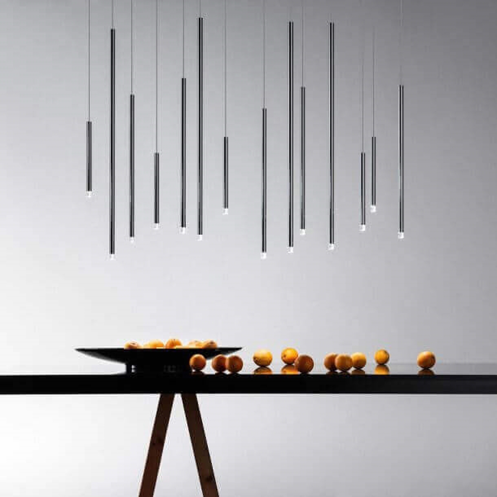 A-Tube Nano kan hænge alene eller i en klynge af forskellige størrelser og farver, så man kan opnå det rette udtryk til ens hjem. Pendlen fås i tre størrelser og flere smukke farver.