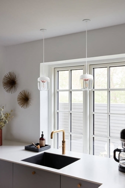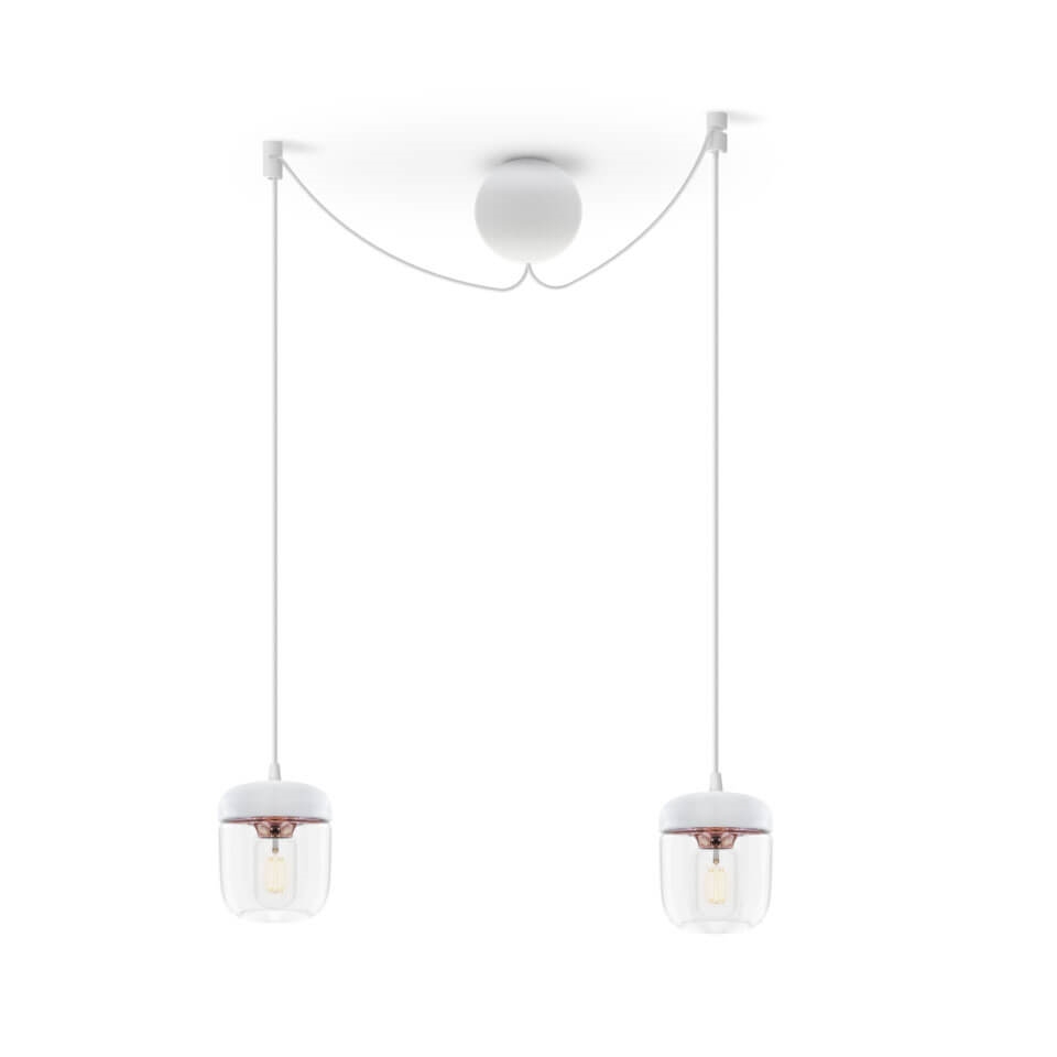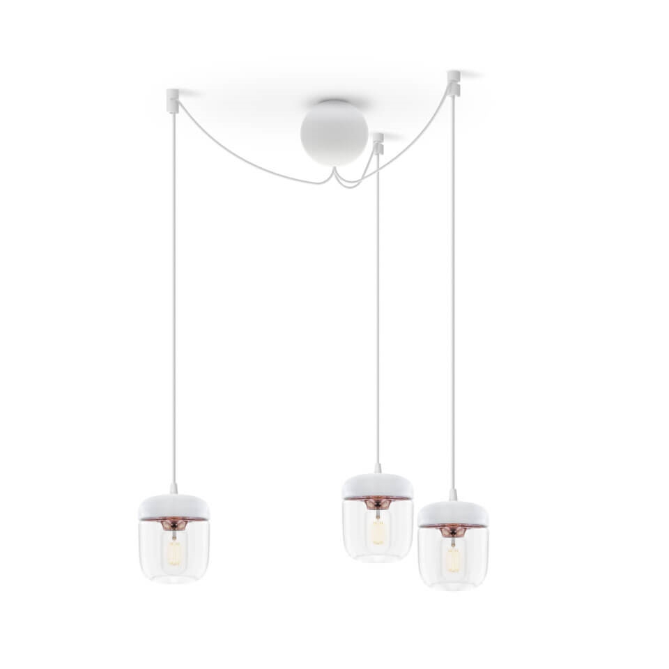 Acorn skal kombineres med et ophæng, som købes særskilt. Vælg eksempelvis mellem E27-ophængene Cannonball, Cannonball Cluster 2 og 3, Cord Set, Cord Set Pro eller Rosette fra Umage.