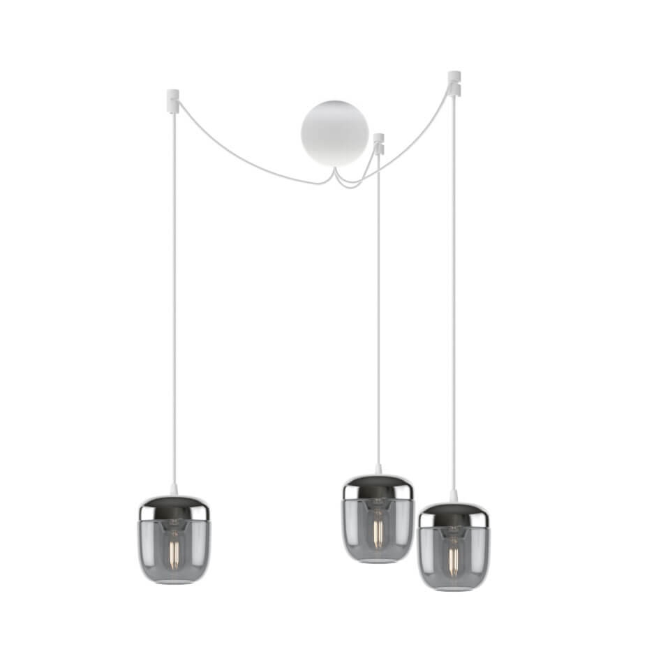 Acorn skal kombineres med et ophæng, som købes særskilt. Vælg eksempelvis mellem E27-ophængene Cannonball, Cannonball Cluster 2 og 3, Cord Set, Cord Set Pro eller Rosette fra Umage.