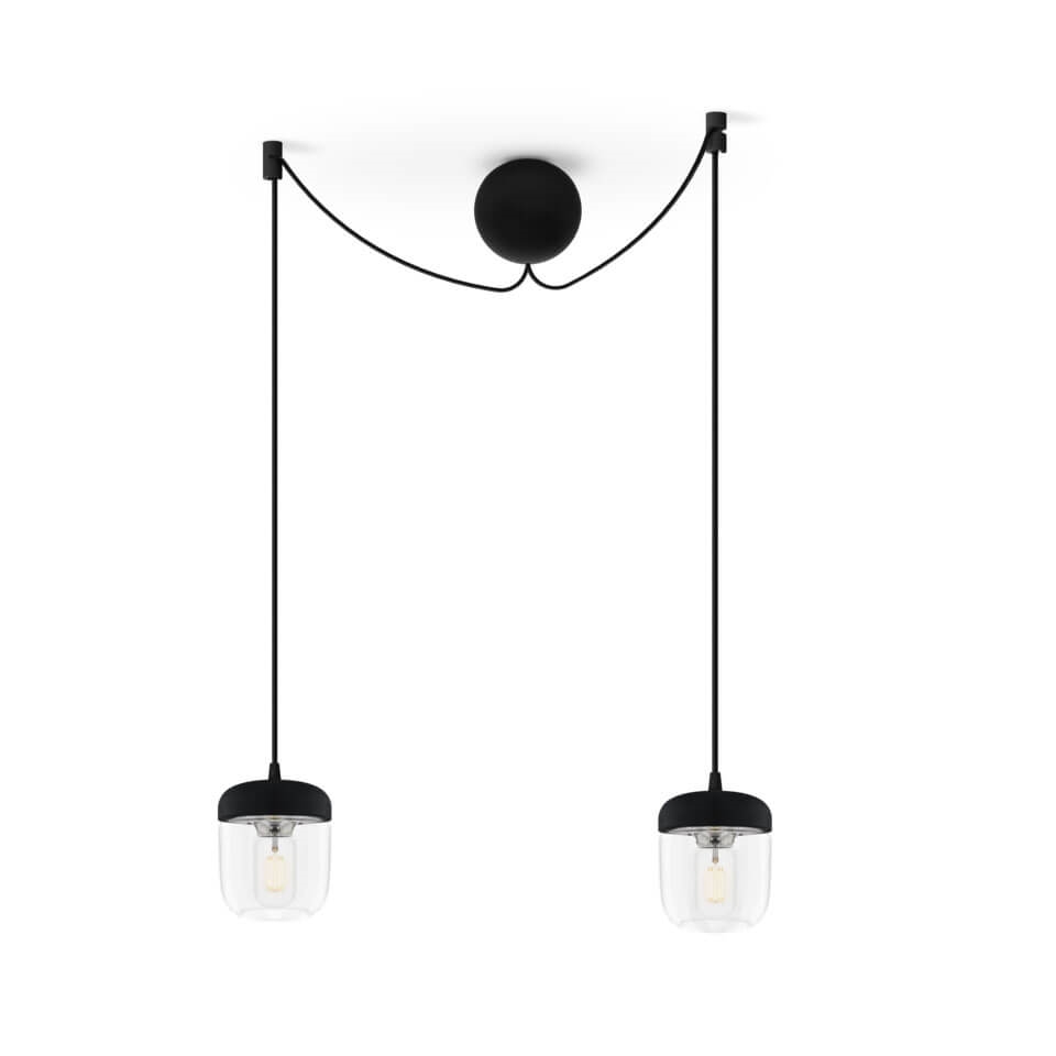 Acorn skal kombineres med et ophæng, som købes særskilt. Vælg eksempelvis mellem E27-ophængene Cannonball, Cannonball Cluster 2 og 3, Cord Set, Cord Set Pro eller Rosette fra Umage.