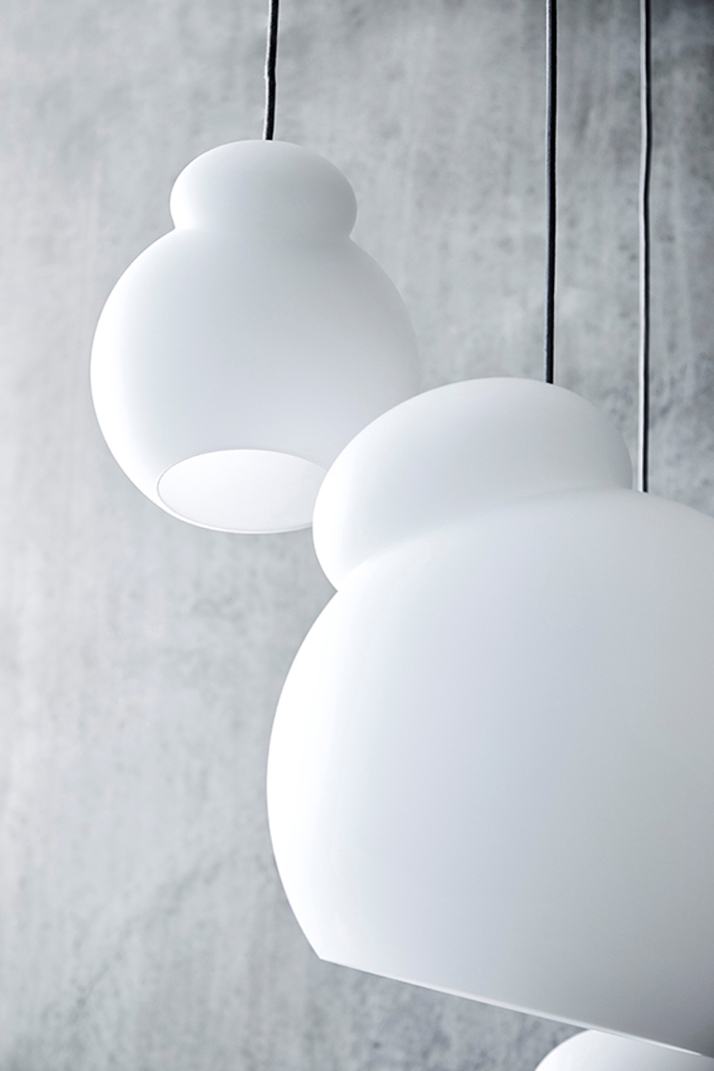 Air pendlen fås i tre størrelser: Ø22, Ø28 & Ø34 cm. De kan med fordel hænge i klynger for at give en mere enestående effekt i rummet.