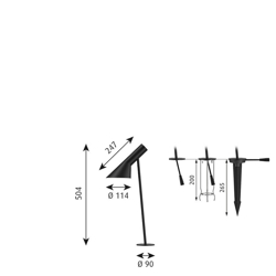 AJ udendørs pullert findes også med anker eller spyd som installation og den findes i to forskellige størrelser henholdsvis 95,4 cm og 50,4 cm. Yderligere findes den også med 3000K.