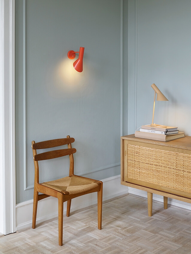 AJ lampen har en karakteristisk ren form med en kombination af lige og buede vinkler. Den enestående AJ væglampen lampe giver en fantastisk nedadrettet belysning, og skærmen kan også vippes, så man kan tilpasse lyset til sit behov.