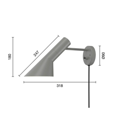 Louis Poulsen AJ væglampe, grå - Designet af Arne Jacobsen