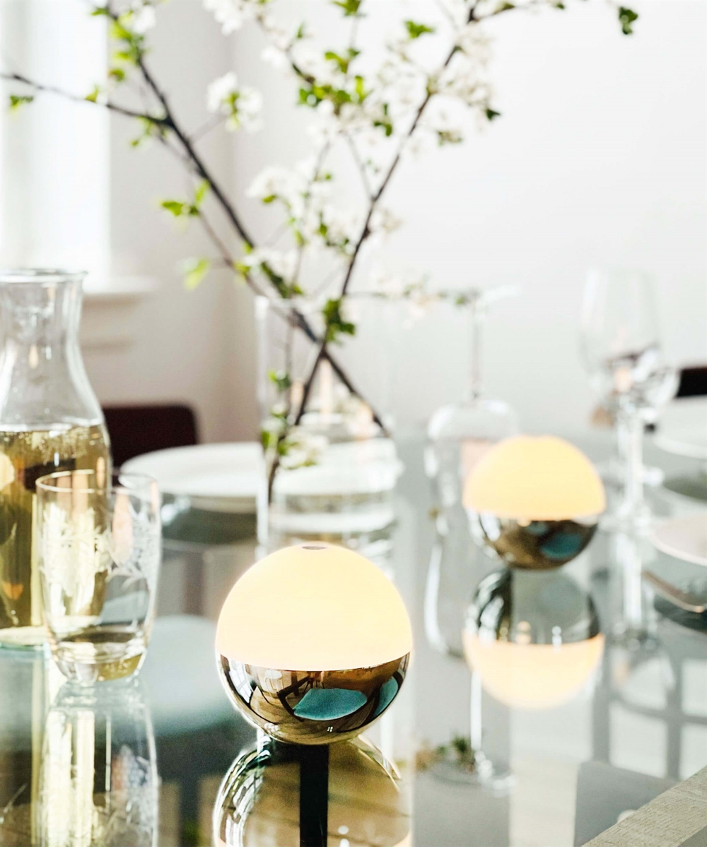 Dyberg Larsen Alba Light Ball batterilampe/bordlampe, krom (2 stk.) - designet af Rena Rose