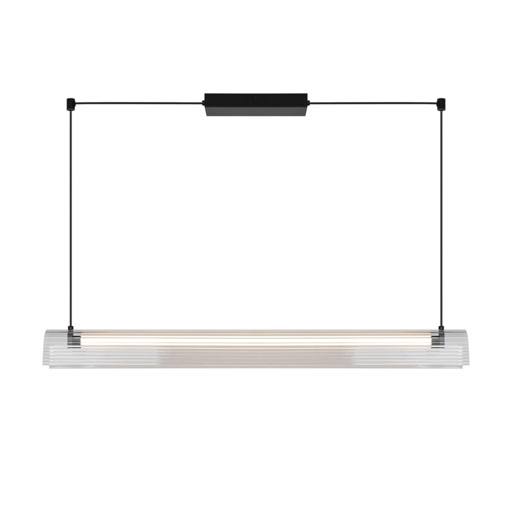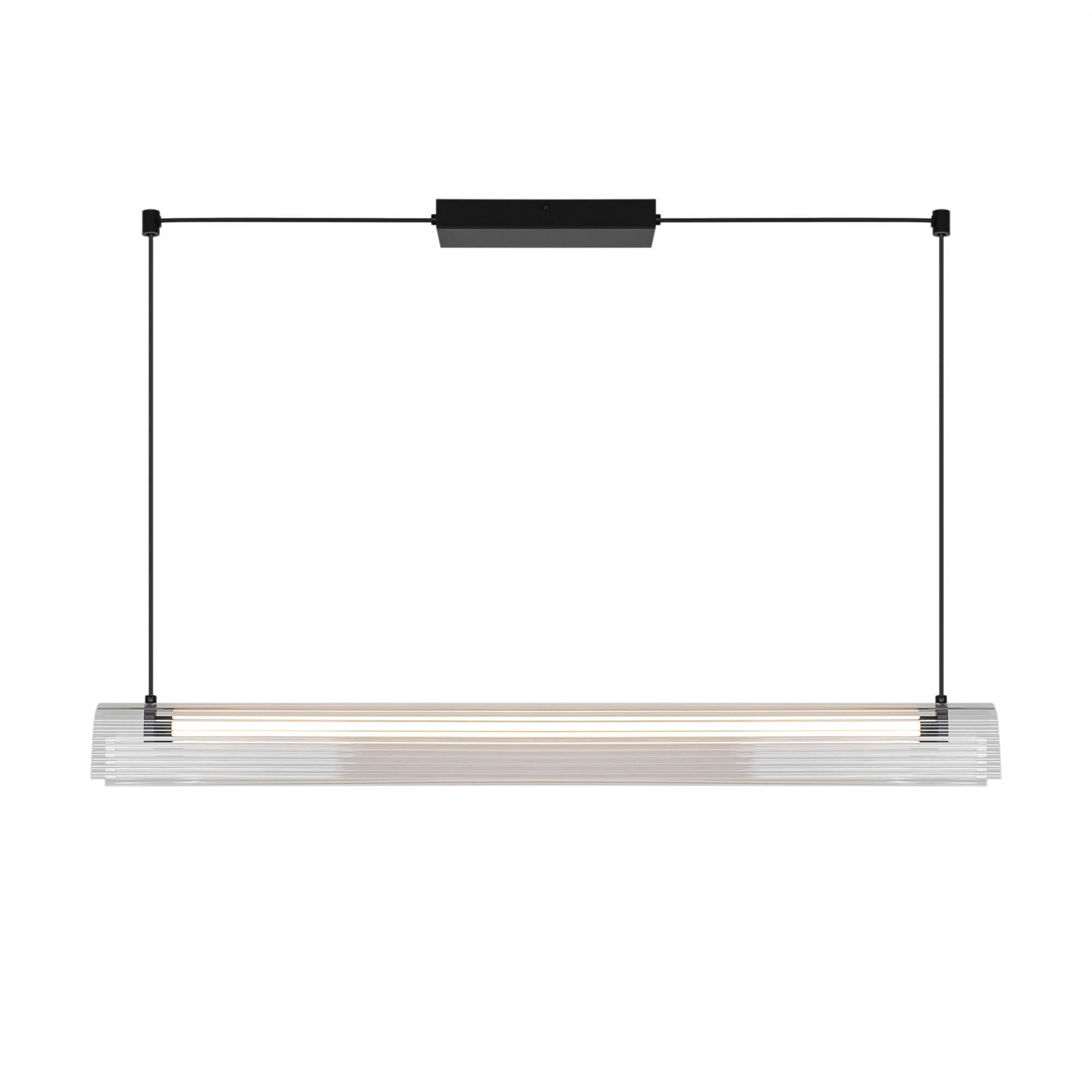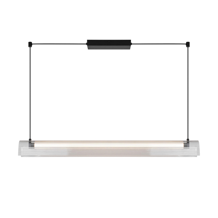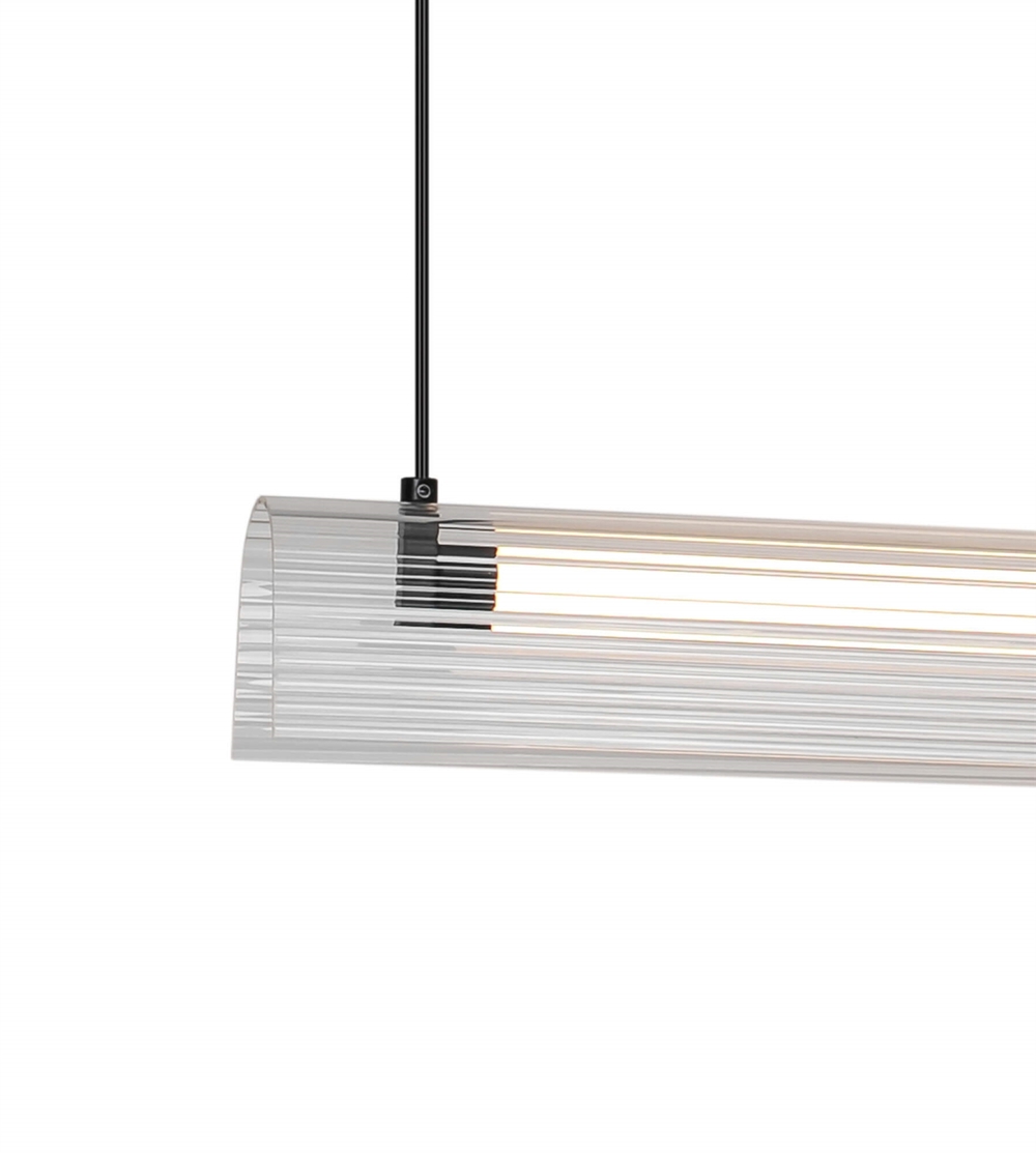 Med sorte finish, transparent skærm og slankt silhuet passer Aliani til mange moderne indretninger. Den aflange form gør lampen særligt velegnet over spisebordet eller køkkenøen.