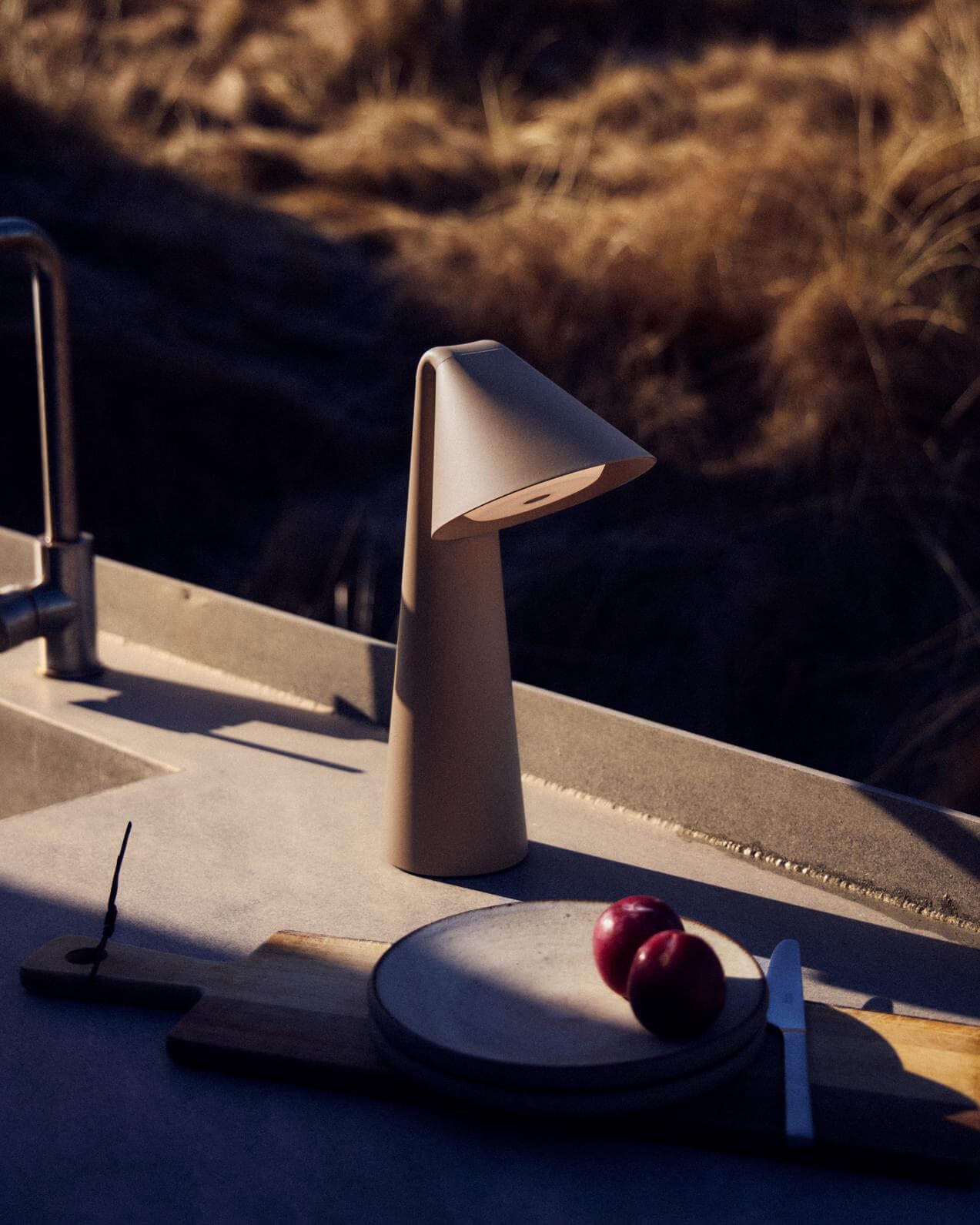 Den transportable bordlampe Ami opkaldt efter det franske ord for ven er en trofast ledsager, der kan følge dig i ethvert miljø både indendørs og udendørs. Benyt Ami som belysning på natbordet, reolen eller terrassen og nyd det bløde lys og indbydende design med elegante former.