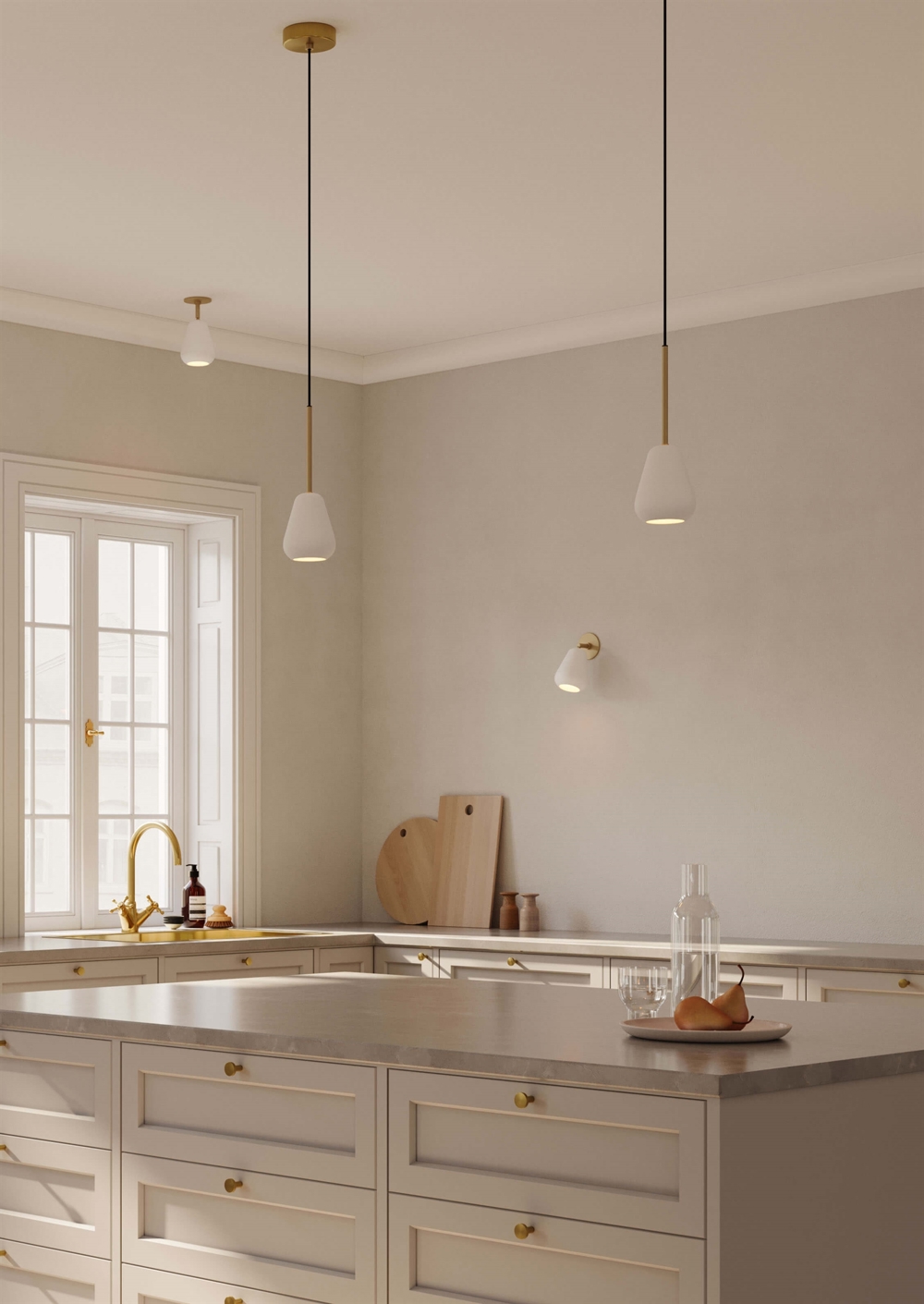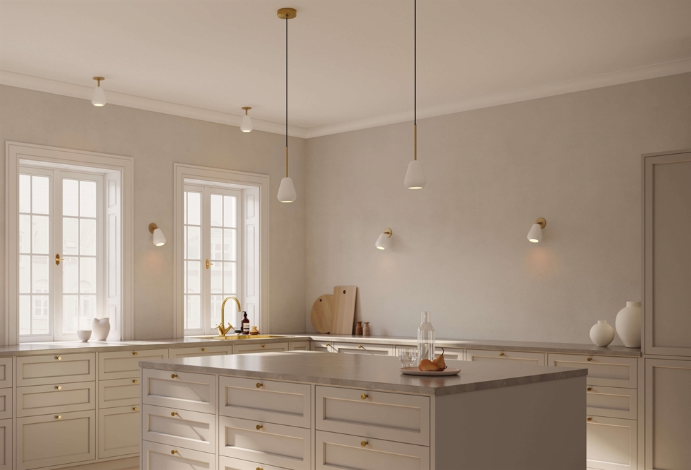 Den elegante Anoli Spot pendel udnytter effektivt pladsen, minimerer skygger og giver en fokuseret belysning. Pendlen har enkle linjer med reference til regndråbens form og findes udover i en kombination af nordic guld og hvid også i sort. Benyt Anoli Spot pendlen i køkkenet eller et andet sted med behov for en pendel med spotlys.