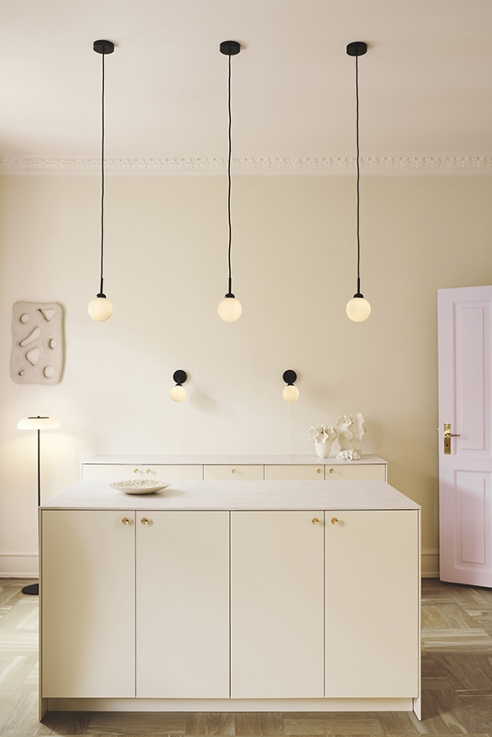 Apiales 1 pendlen spreder et behageligt diffust lys, som er perfekt egnet over køkkenøen eller spisebordet.