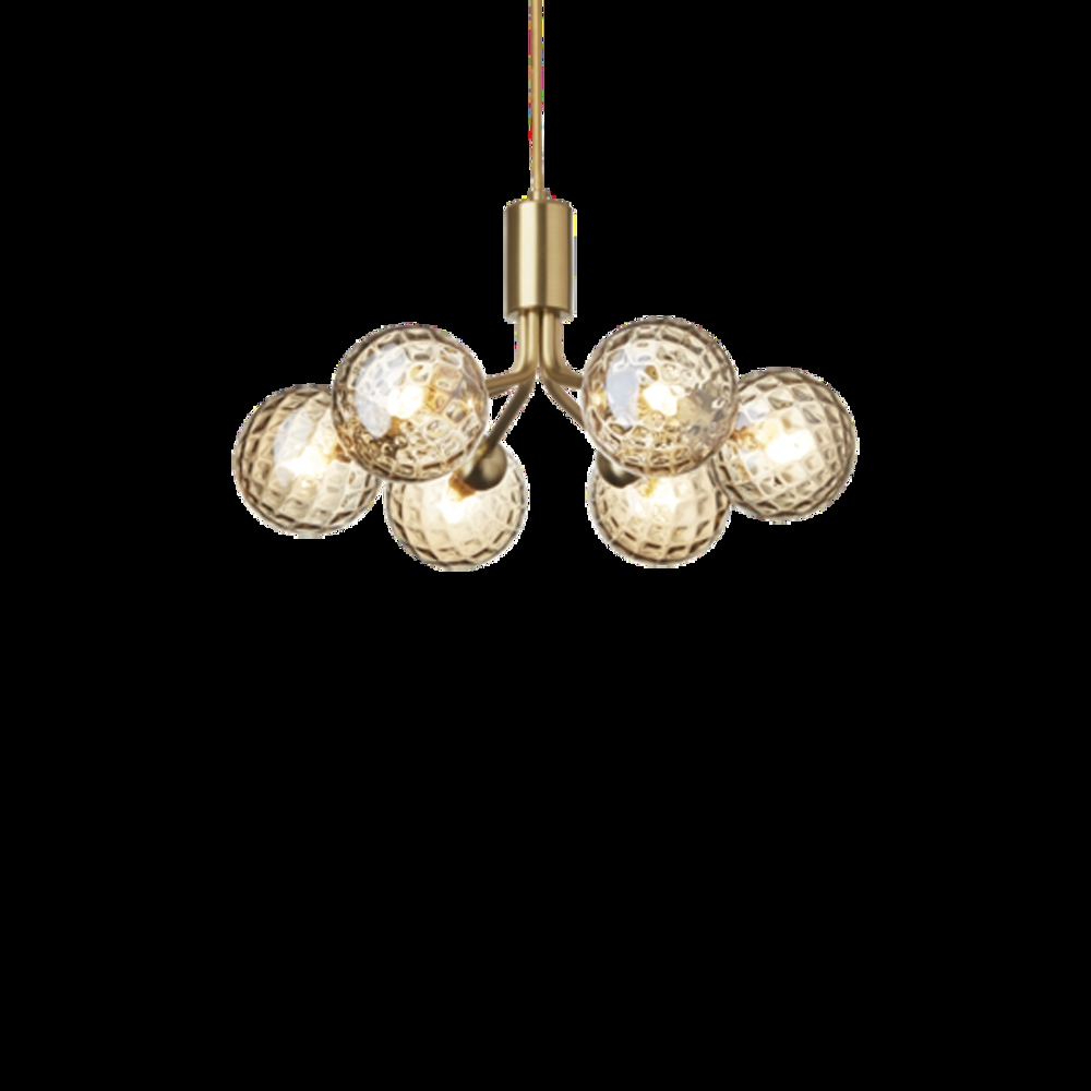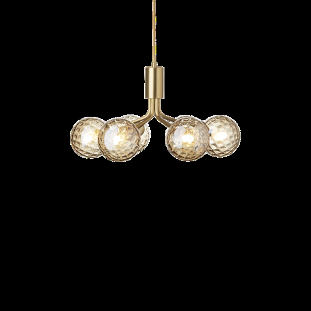 Nuura Apiales 6 lysekrone, børstet messing/optic guld glas - designet af Sofie Refer.