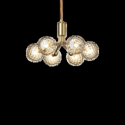 Apiales 6 lysekrone, børstet messing/optic guld glas