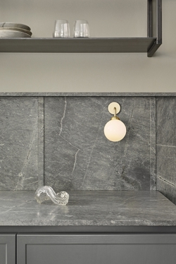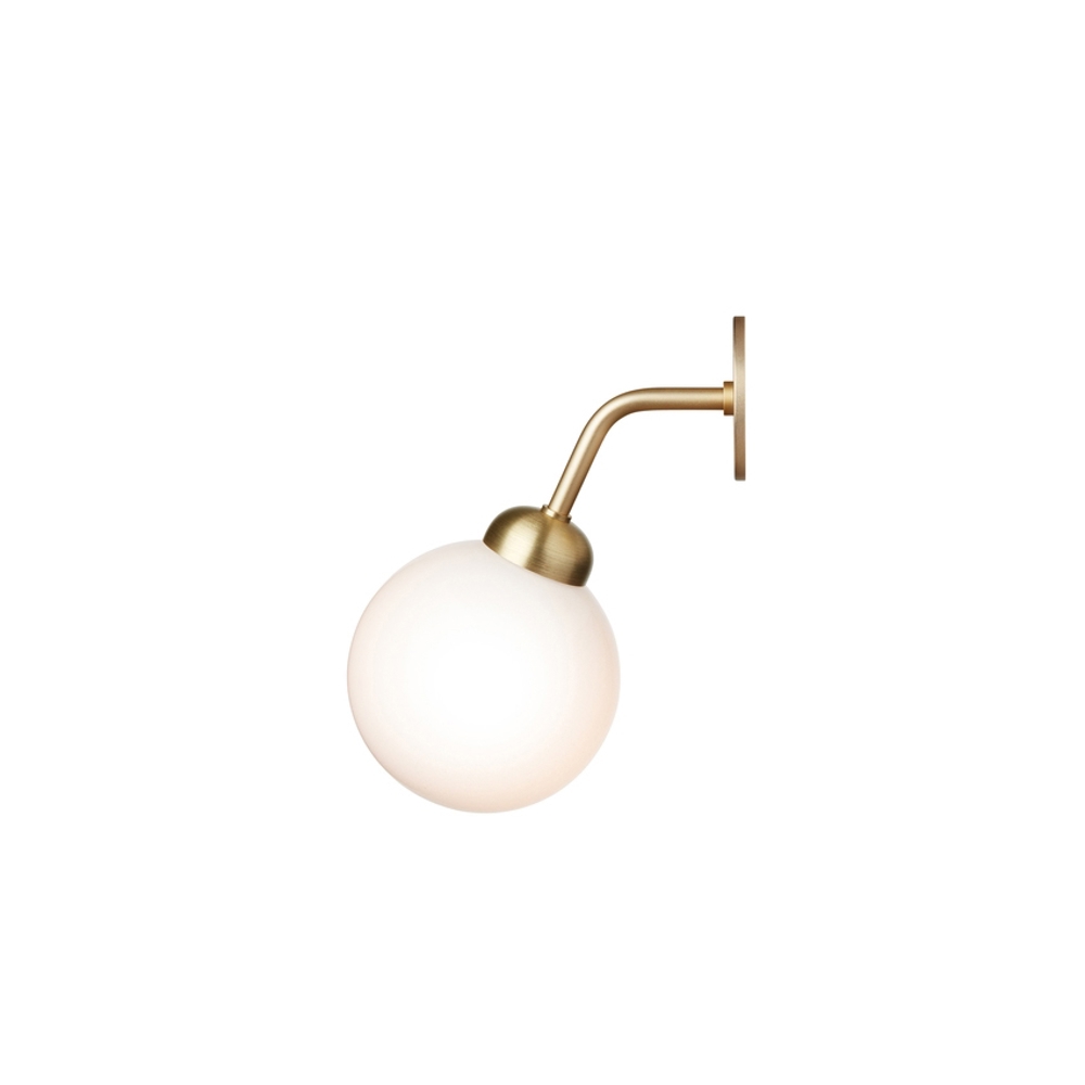 Apiales væglampen består af én mundblæst opal glaskuppel samt børstet messing detaljer. Den fine væglampe giver et klassisk udtryk til rummet uden at forstyrre andre elementer i rummet.