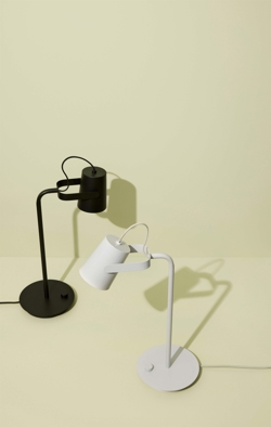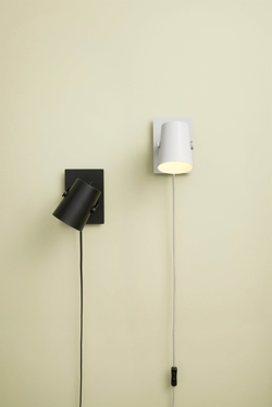 Ardent fås som væglampe og som bordlampe i sort eller lysegrå.