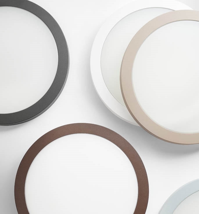 Aria er en flot væg- eller loftslampe, skabt i støbt aluminium. Den udvendige struktur er behandlet og pulverlakeret for at forhindre korrosion og findes i fem klassiske farver, mens basen er elegant hvid. Lampens lakerede overflade, samt en IP-klassificering på 65 sikrer en lang levetid.