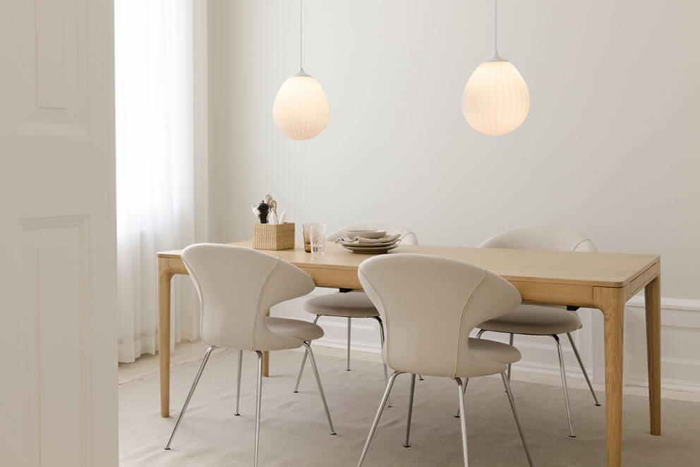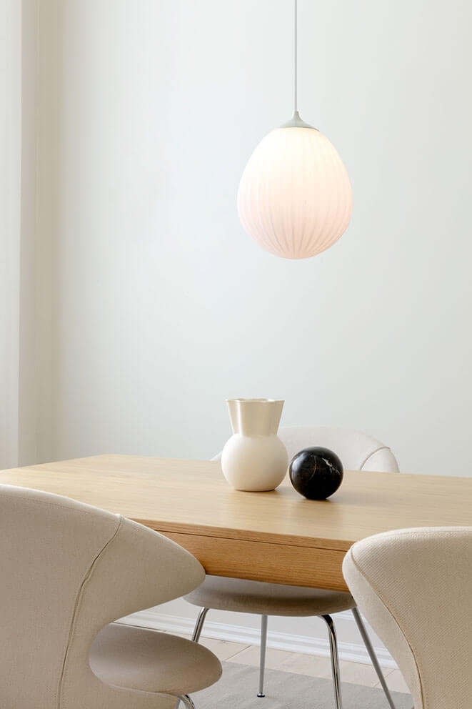 Lampeskærmen skal kombineres med et ophæng, som købes særskilt. Vælg eksempelvis E27-ophængene Cannonball, Cannonball Cluster 2 og 3, Cord Set, Cord Set Pro eller Rosette fra Umage.