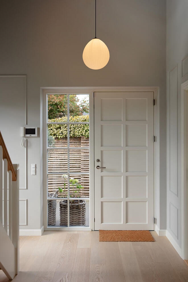Lampeskærmen skal kombineres med et ophæng, som købes særskilt. Vælg eksempelvis E27-ophænget Cord Set Pro fra Umage, der er designet til skærmes vægt på 2,8 kg.
