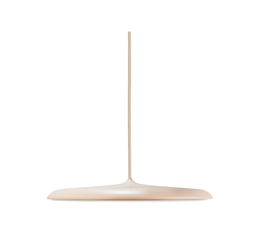Pendlen har et minimalistisk og tidløst design inspireret af bækkenet til et trommesæt. Skærmen sikrer et blødt og diffust lys, der hvor lampen hænges. Artist er med integreret dæmpbar LED - og lysstyrken kan derfor ændres efter behov med vægdæmper. Der er 5 års garanti på LED-lyskilden.