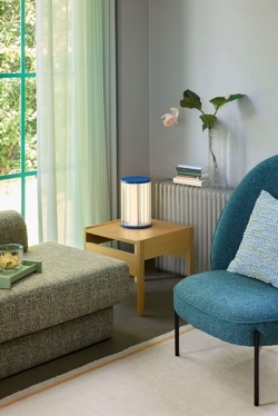 Bordlampen Aru bringer med den rolige blå nuance og organiske form behageligt og stemningsskabende lys ind i hjemmet. Designet er både tidløst og moderne med bløde kurver, der giver lampen et harmonisk, elegant og næsten skulpturelt udtryk.