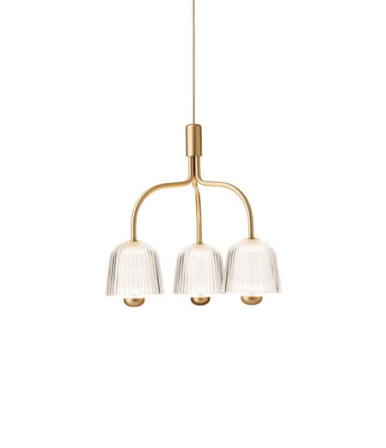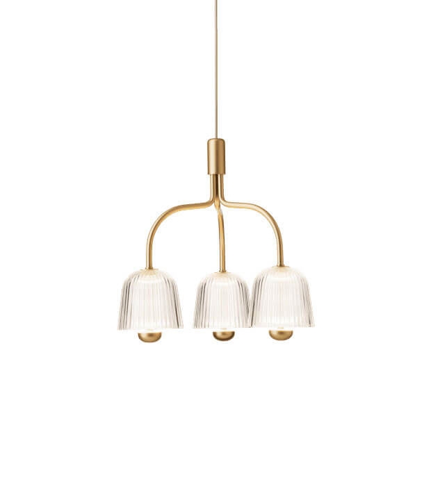 Nuura Asteea 3 lysekrone, satin messing/riflet klar - designet af Sofie Refer