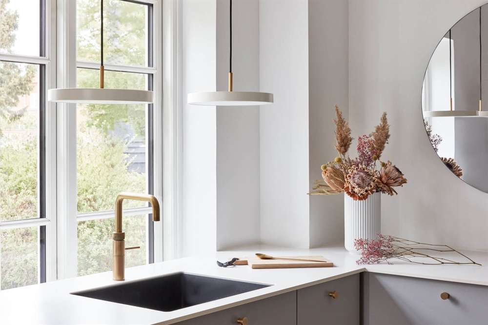 Asteria mini pendlen udsender et blødt lys fra den integrerede LED-lyskilde. Den populære lampe har et minimalistisk design med et enkelt og tidløst udtryk. Pendlens slanke og elegante form gør lampen til et oplagt valg til køkkenområder, som lampe over spisebordet eller som belysning i soveværelset, entréen eller stuen.