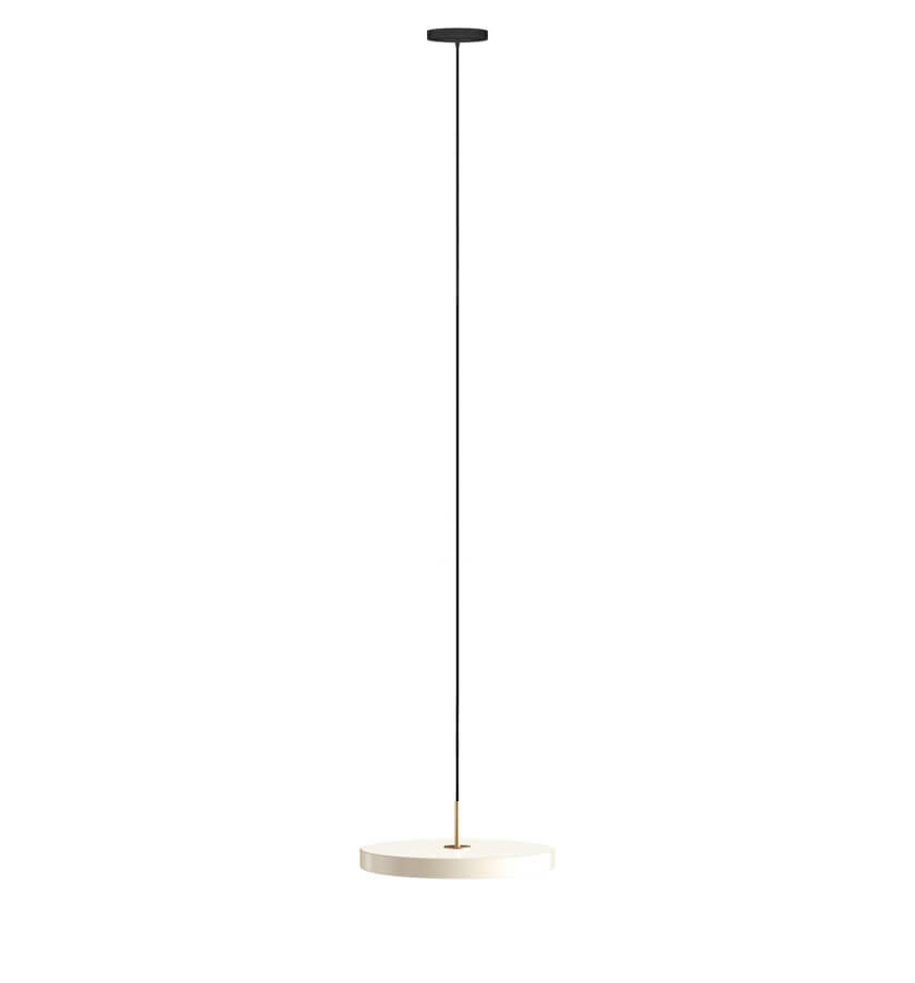 Umage Asteria Plus medium pendel, pearl hvid med top i messing - designet af Søren Ravn Christensen