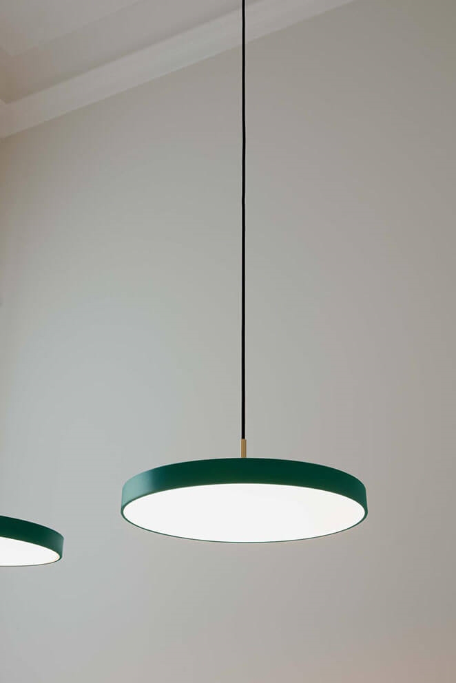 Asteria Plus medium i skovegrøn er en variant af den populære Asteria pendel, der har fået indbygget lysdæmper og mulighed for montering i lysskinne. De ekstra muligheder med Asteria Plus øger fleksibiliteten og gør sammen med det elegante minimalistiske design lampen til et oplagt valg til både kontorbelysning, køkkenområder eller lampe over spisebordet.