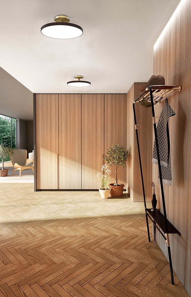 Asteria Up loftlampen har et minimalistisk og diskret design med et tidløst udtryk. Lampen har en integreret LED-lyskilde, der udsender et behageligt lys og via toppanelet også retter lyset opad, så der skabes et blødt omgivende lys.