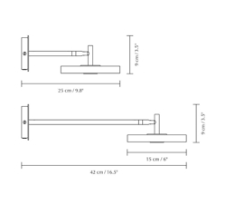 Asteria væglampen findes med en kort eller med en lang ekstra fleksibel lampearm i messing med skærm i en række farver. Denne variant er med ledning og stik til stikkontakt. Der er også en hardwired variant til montering direkte på lampeudtag.