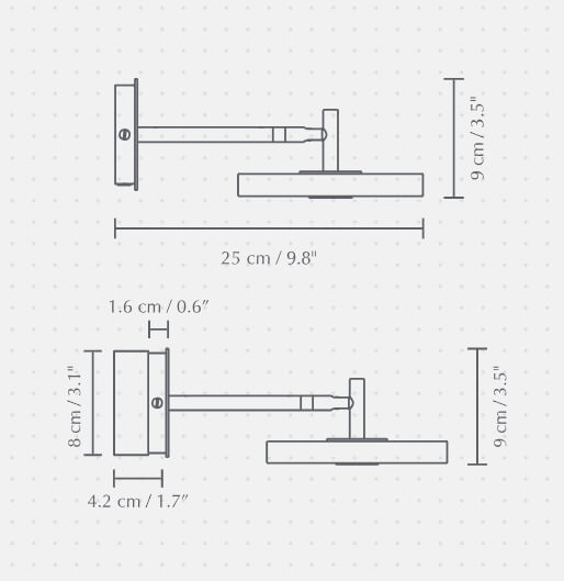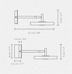 Den korte Asteria væglampe i mist grå har et minimalistisk design med et tidløst udtryk. Lampen har en integreret LED-lyskilde med et behageligt lys, der kan dæmpes via en diskret knap på undersiden af skærmen.