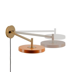 Asteria væglampen findes med en kort eller med en lang ekstra fleksibel lampearm i messing med skærm i en række farver. Denne variant er med ledning og stik til stikkontakt. Der er også en hardwired variant til montering direkte på lampeudtag.