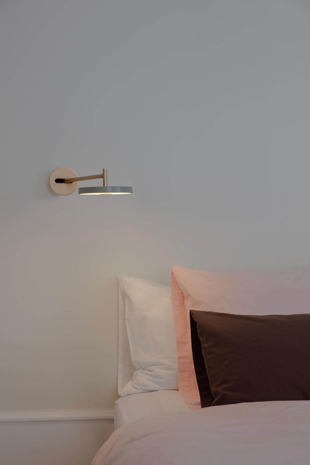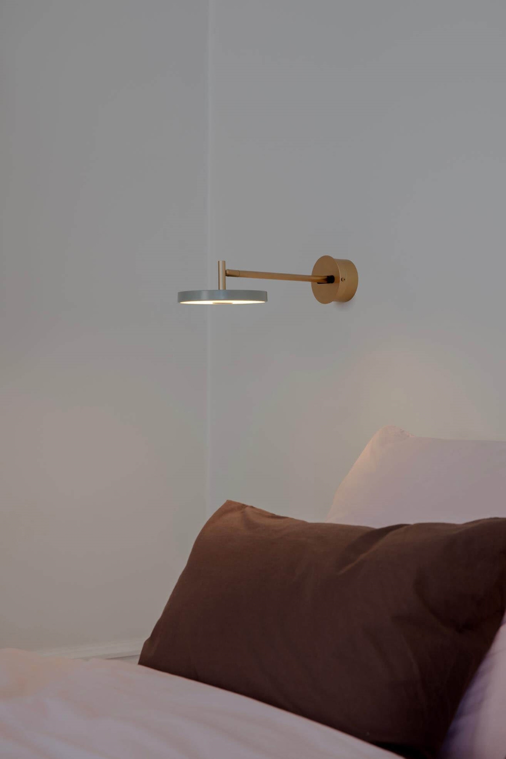 Asteria væglampen findes med en kort eller med en lang ekstra fleksibel lampearm i messing med skærm i en række farver. Denne variant er hardwired til montering direkte på lampeudtag. Der er også en variant med ledning og stik til stikkontakt.