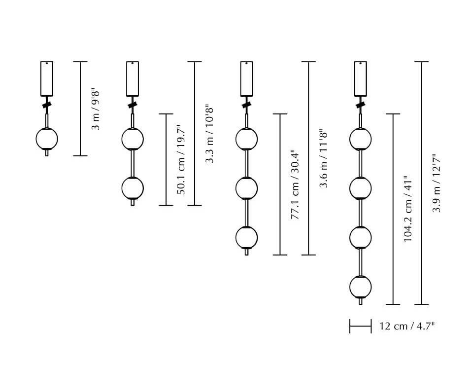 Audrey findes som pendel med en, to, tre eller fire kugleskærme i opalglas samt som bordlampe og som gulvlampe.