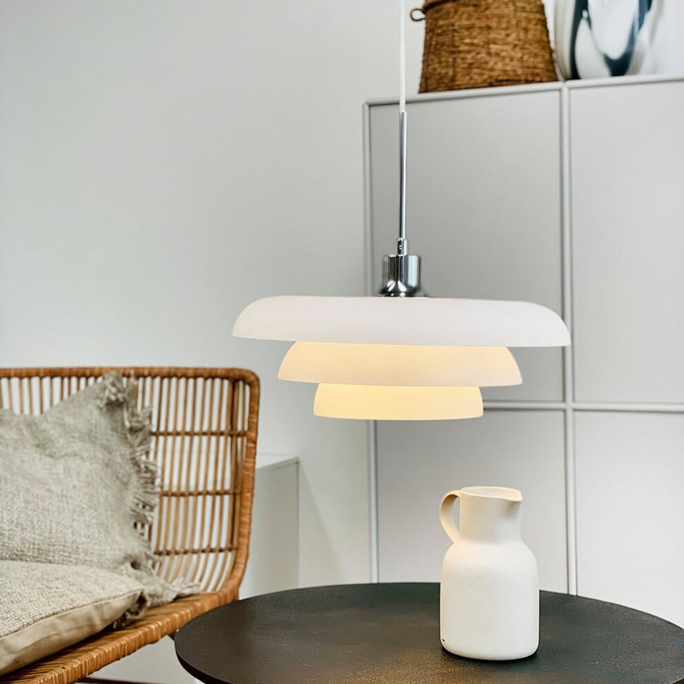 Ava pendlen i opal og krom er dansk design, der vil passe godt i både klassiske og moderne indretninger. Pendlen har et blødt og behageligt lys og kan med sit minimalistiske design eksempelvis benyttes i køkkenet, stuen eller over spisebordet.
