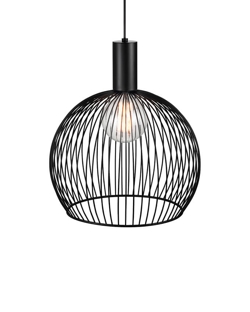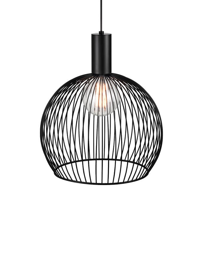 Pendlens design er enkelt og æstetisk. Den synlige pære er omkranset af buede metaltråde, som giver et smukt lys og fascinerende skyggespil.