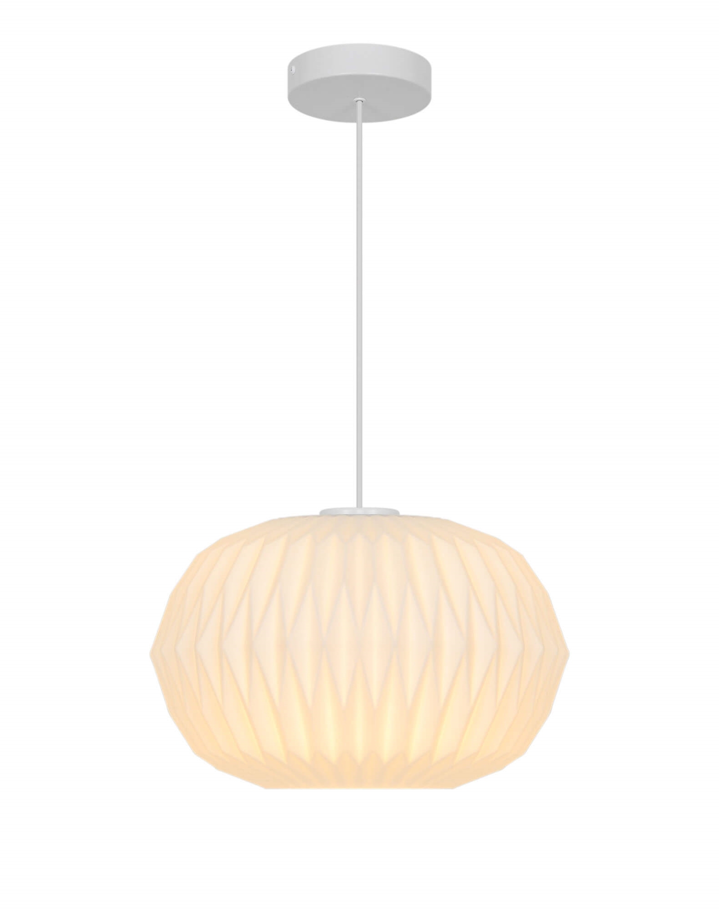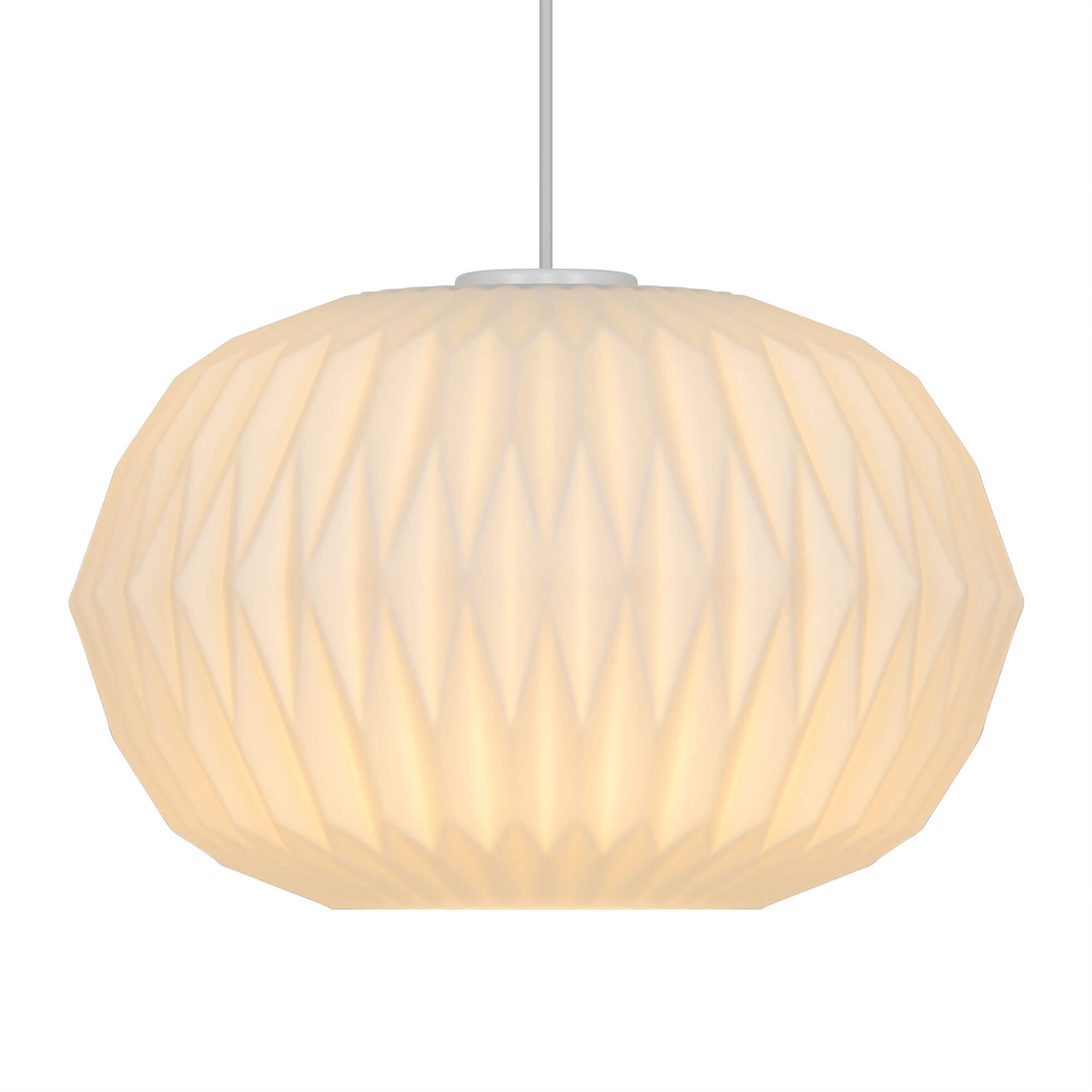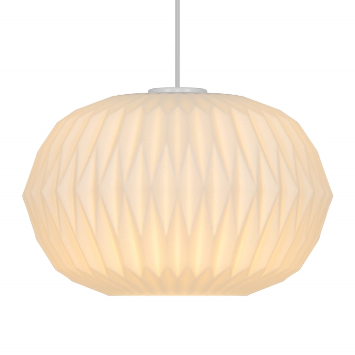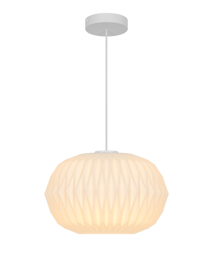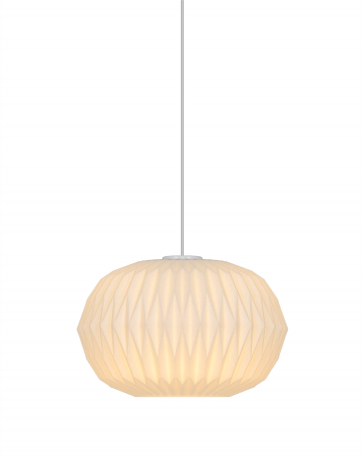 Avianas stilfulde udtryk trækker på klassisk lampedesign med plisserede skærme og er fremstillet i mat hvidt opalglas.