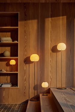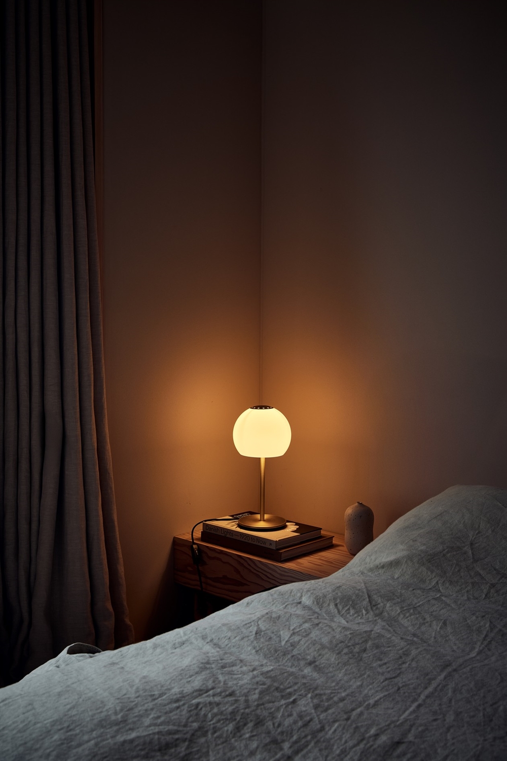 Med bordlampen Ball Glass lanceret i 2026 får det enkle og tidløse design en ekstra dimension, der tilfører varme og atmosfære til indretningen med ravfarvet eller sandgrå glas. Sammen med en perforeret metalplade på toppen tilføjer brugen af glas en moderne æstetik til Benny Frandsens ikoniske Ball-design.