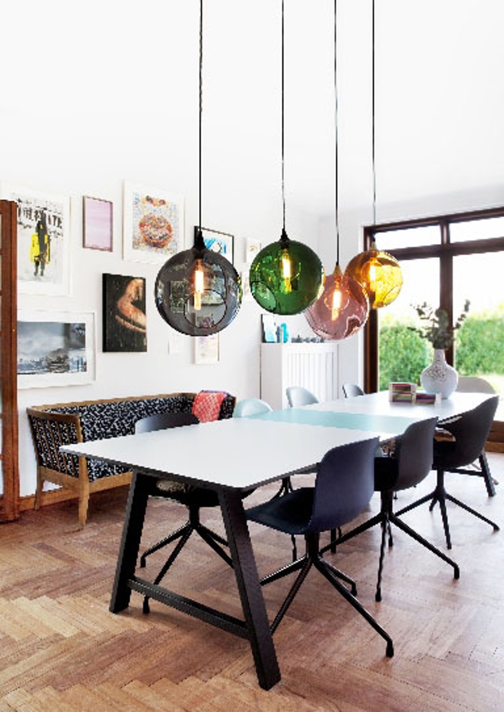 I år 2013 lancerede Design By Us denne meget enkle og dekorative pendel i farverne rose, amber, green og smoke. Pendlerne har en diameter på 19 cm.