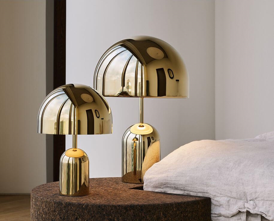Bordlampen Bell har fået sit navn fra lampens klassiske klokkeform og har en reflekterende overflade, der spejler tone og karakteristika fra omgivelserne. Lampen kan eksempelvis placeres på natbordet eller sofabordet, i en reol eller måske i vindueskarmen.