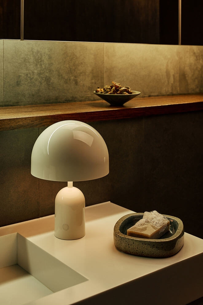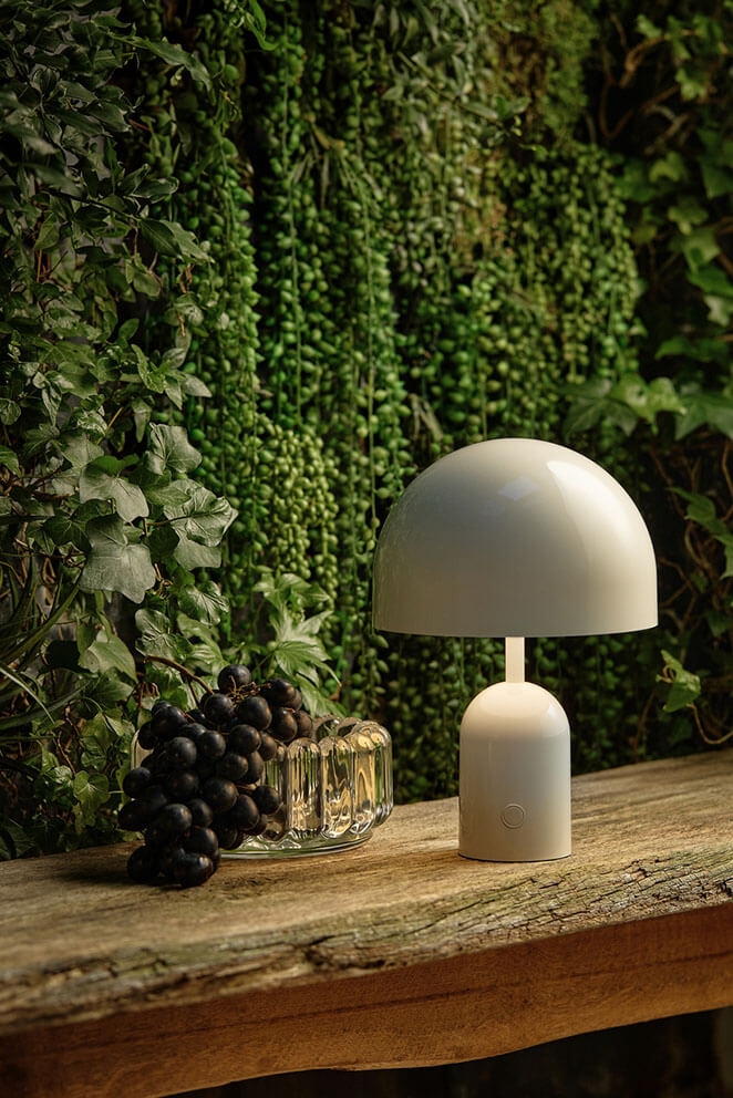 Den genopladelige batterilampe Bell har fået sit navn fra lampens klassiske klokkeform og har en reflekterende overflade, der spejler tone og karakteristika fra omgivelserne. Bell Portable er dæmpbar og kan på en fuld opladning alt efter den valgte styrke lyse i op til 9 timer. Det tager cirka fem timer at lade lampen helt op med det medfølgende USB-kabel. Bordlampen er nem at tage med sig og kan eksempelvis placeres på natbordet eller sofabordet, i en reol, i vindueskarmen og kan også anvendes udendørs på altanen eller terrassen.
