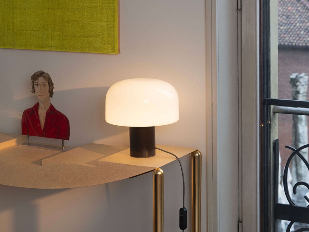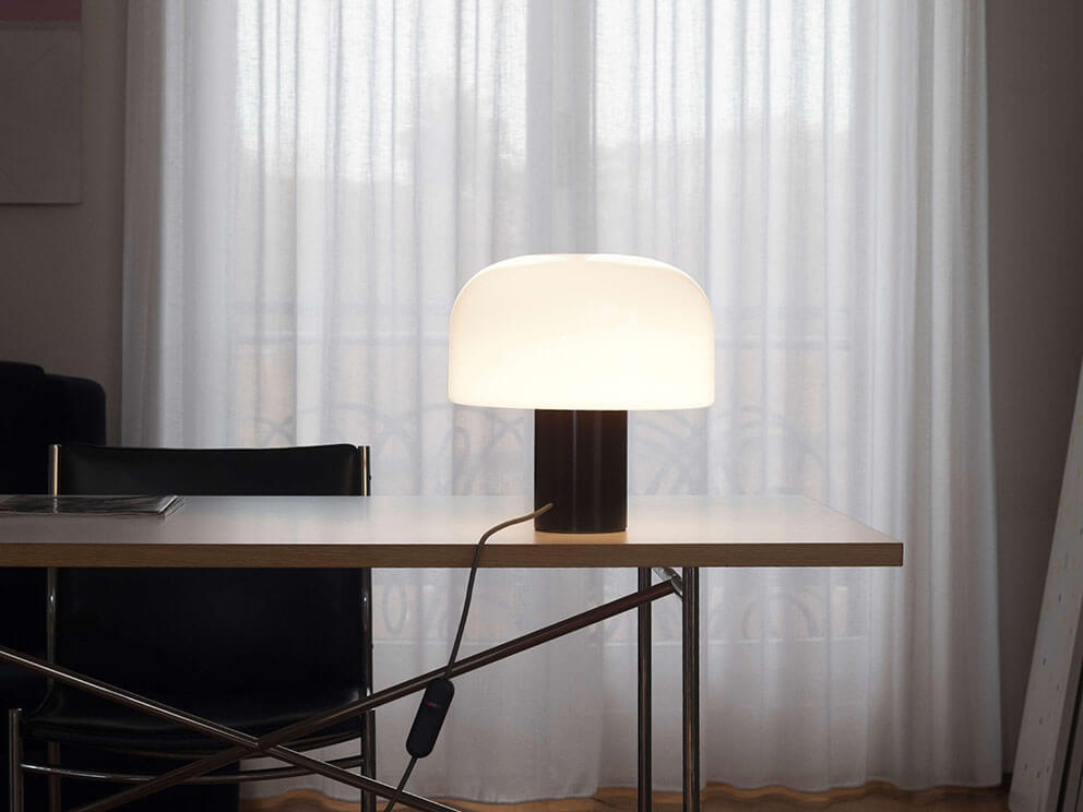 Bellhop Glas bordlampen sikrer en ensartet og varm belysning og vil med sit elegante design passe godt ind i mange indretninger. Lampen er dæmpbar, så lyset kan tilpasses enhver situation og bidrage til at skabe den rette stemning i rummet.