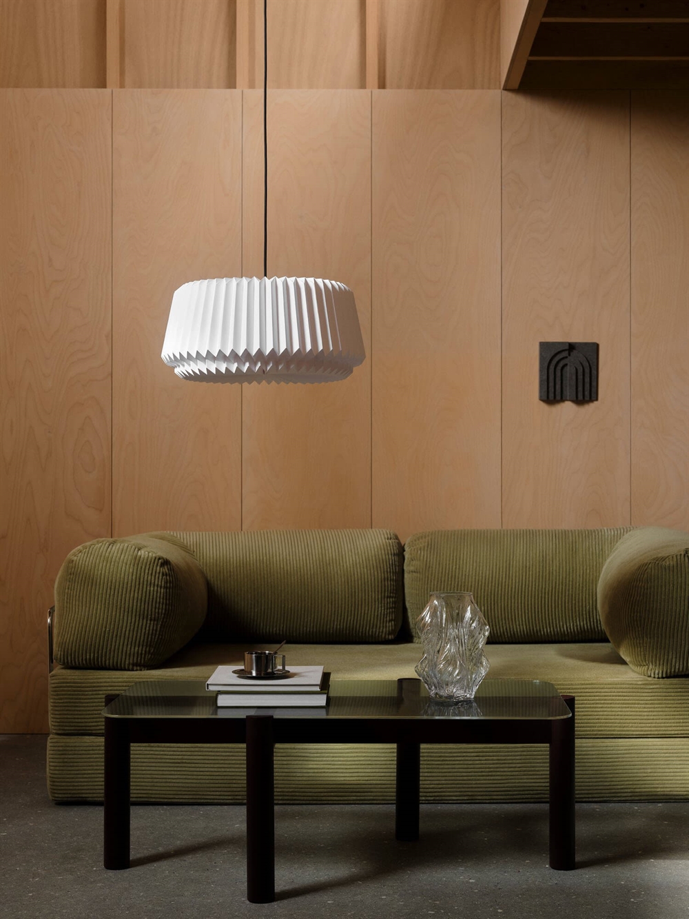 Belloy er en pendel bestående af en papirskærm, som skaber et diffust og blødt lys. Pendlen har et naturligt og rart udtryk og findes i tre størrelser på henholdsvis Ø30, Ø45 og Ø45. Der er også varianten Belloy Big med størrelsen Ø65. Belloy fås endvidere som loft- og væglampe i størrelsen Ø40.