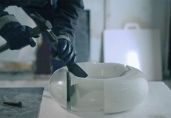 Fantastisk bordlampe udskåret i ét stykke håndhuggget Botticino marmor.