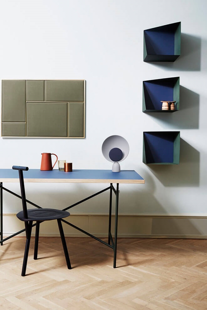 Please wait to be seated Blooper bordlampe, askegrå/navy blå - designet af Mette Schelde