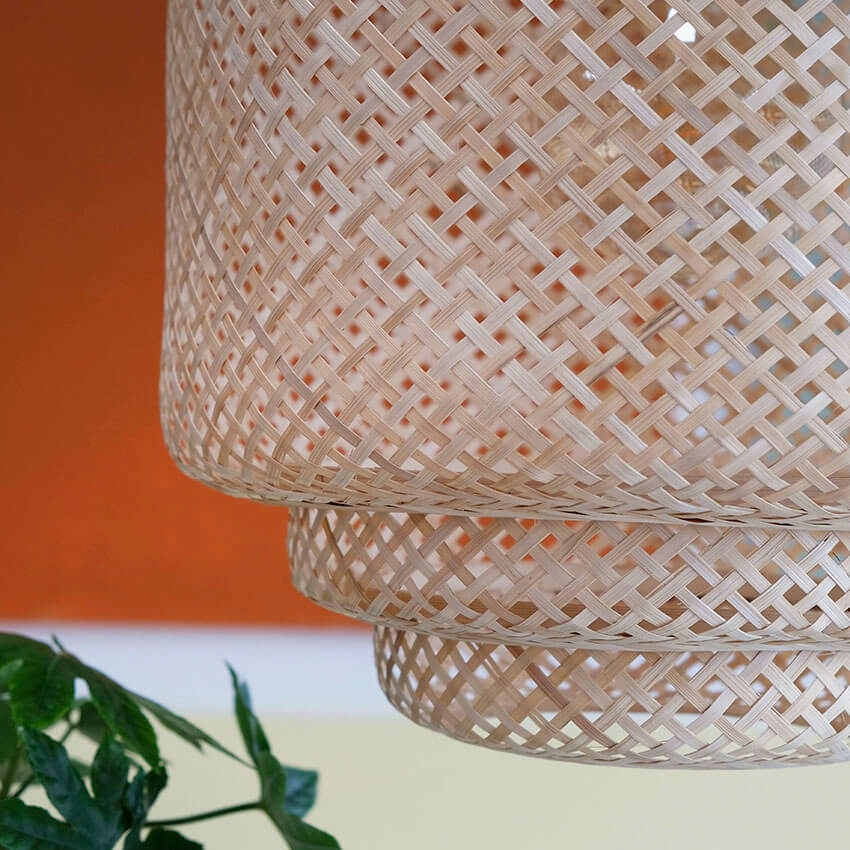 Boom pendlen består af håndflettet bambus, der med sit design, skaber et indbydende, naturligt og afdæmpet lys til rummet – Perfekt at hænge i stuen, soveværelset eller over spisebordet.