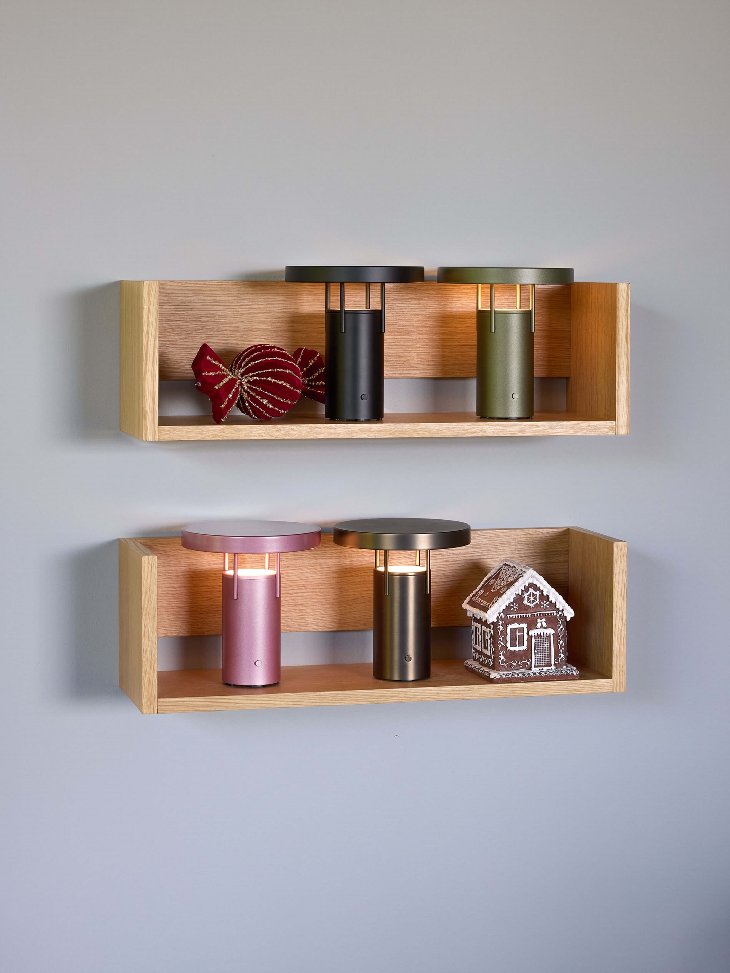 Denne genopladelige bordlampe er døbt BringMe, fordi den kan tages med hvor som helst. Den transportable batterilampe kan placeres i en reol eller benyttes som lampe på natbordet eller udendørs som terrasselampe. Lampen er trinløs dæmpbar via en touch-funktion og kan lyse op til 8 timer før den skal oplades igen. Det sker med det medfølgende USB-kabel og tager cirka 6 timer for en fuld opladning.