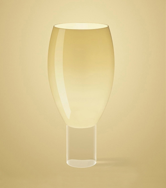 I Buds serien er det blæst glas kombineret med en gennemsigtig base, der kendetegner denne smukke bordlampe.