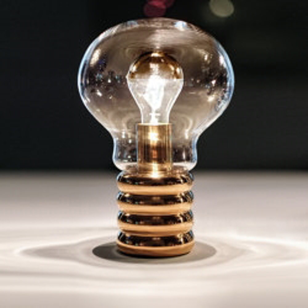 Bulb bordlampen har messingbase og mundblæst Murano krystalglas. Bulb Brass er det nyeste medlem af Ingo Maurer Bulb-familien. Baseret på det verdensberømte 1966-design udviklede Ingo Maurer-teamet en messingversion. Den håndlavede lampebase er lavet af messing i høj kvalitet. Den ubehandlede messingoverflade vil ændre sig over tid og give lampen et unik udseende. Den patina, der fremkommer er en naturlig ældning og resultatet af daglig brug. Det betragtes som en æstetisk gevinst, da det står for en karakteristisk materiel egenskab, der i sidste ende kan forstås som brugerens individuelle signatur.