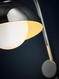 Den øverste halvkugle har små huller i skærmen, så der kommer lidt opadgående lys ud, men det primære lys kommer fra den nederste halvkugle, der spreder et behageligt diffust lys ud til rummet.