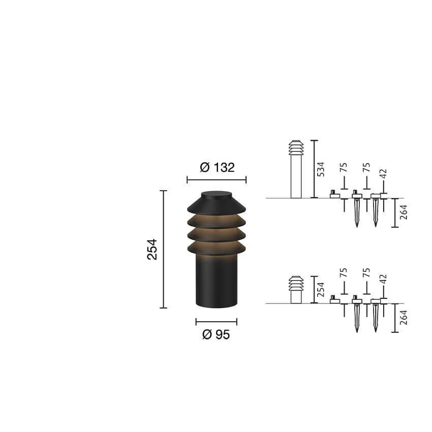 Lampen er perfekt til haven og fås i to forskellige højder. Derudover findes den med forskellige installationsmuligheder og både med 2700K og 3000K.